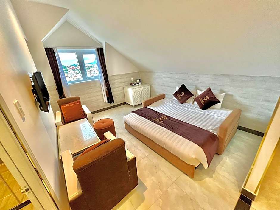 The double room includes a private bathroom equipped with a walk-in shower, a hairdryer and slippers. The spacious double room provides a mini-bar, a wardrobe, a safe deposit box, a flat-screen TV with cable channels, as well as mountain views. The unit offers 1 bed.